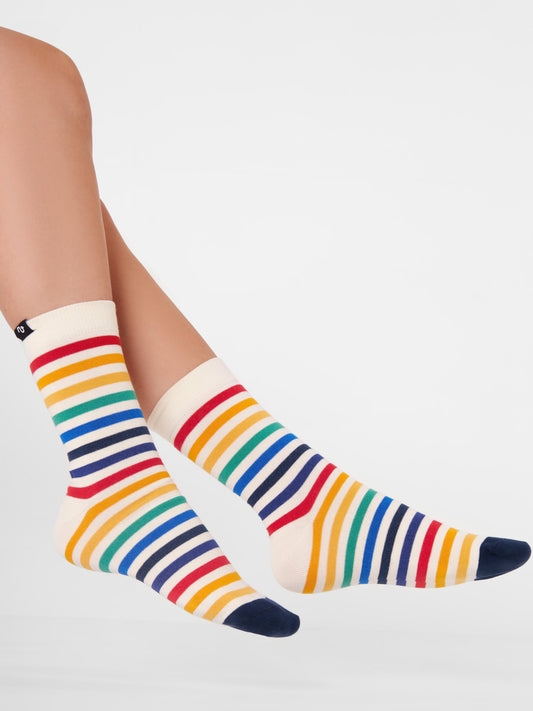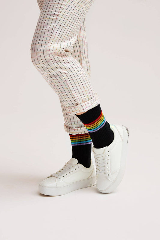 Uitverkocht'Rainbow Stripes' Sokken - White