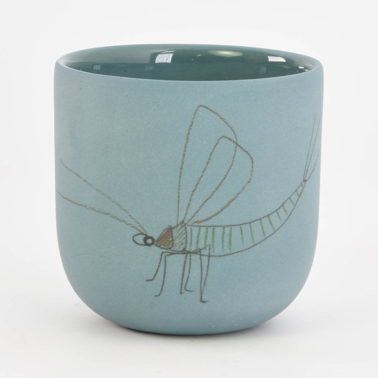 De insecten zijn met de hand op de kopjes getekend.